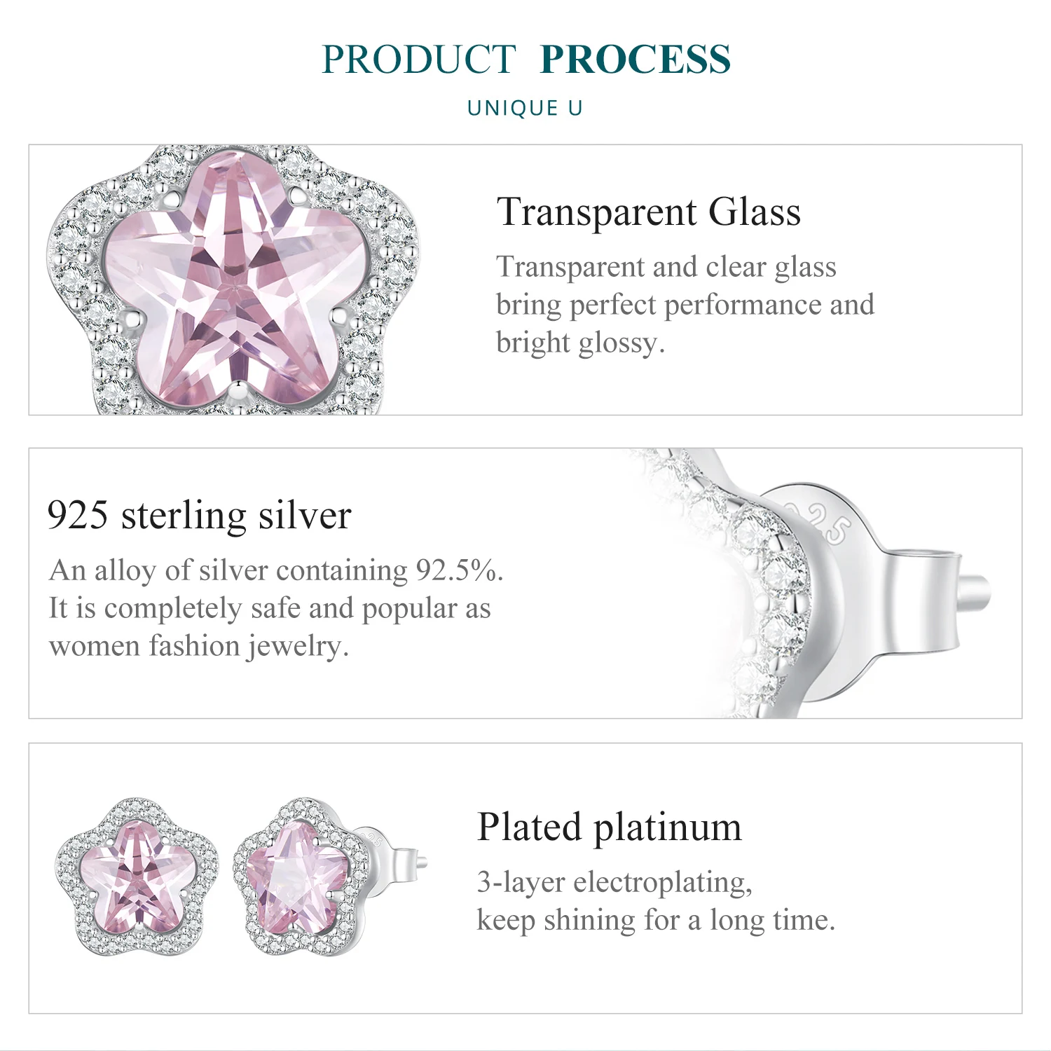 925 Sterling Silver Stud Earrings Pink Earrings Flower Earrings